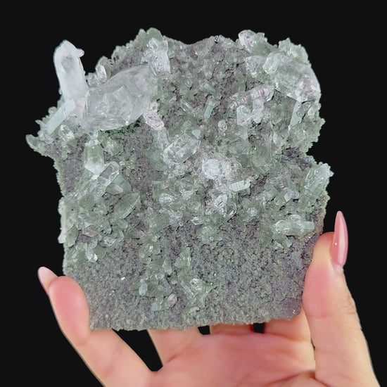 Stunning Clear Lemurian Quartz on a sparkly green Chlorite Base. The thin matrix makes this piece focus on the clear Quartz. A must add to your collection ✨